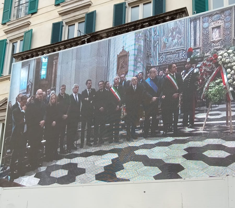 Giorgia Meloni, all’uscita dalla chiesa, emozionata, ha commentato: ”Era una persona capace di grande visone e di grande concretezza. Era una delle persone che ho conosciuto che più sapevano fare il gioco di squadra. Ne ho un ricordo straordinario, tra l’altro ci sentivamo. Penso che l’Italia sia stata fortunata a poter contare su una persona così nelle sue istituzioni”.