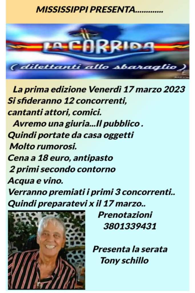 Mississippi presenta la prima edizione de La CORRIDA Venerdì 17 Marzo con 12 sfidanti