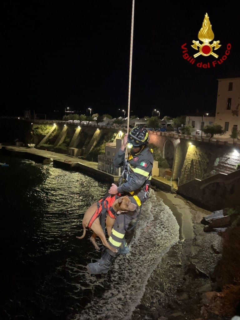 Il Pitbull di due anni, era caduto nella scogliera sottostante e, solo grazie alla fitta vegetazione, non ha riportato nessuna ferita.