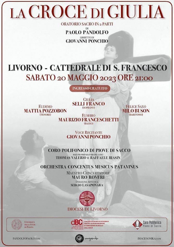 Sabato 20 maggio, alle ore 21.00, in Cattedrale avremo finalmente la gioia di assistere all’esecuzione dell’oratorio sacro intitolato La Croce di Giulia, opera vincitrice di una delle precedenti edizioni del Concorso Nazionale di Musica Sacra “Santa Giulia”, promosso dalla Diocesi di Livorno in collaborazione con il Conservatorio “Pietro Mascagni”.