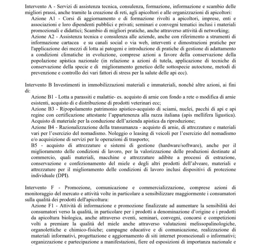 C’è poi la tutela e la valorizzazione della biodiversità animale e vegetale, la spinta a creare e a sostenere l’occupazione e l’inclusione sociale in particolare nelle zone rurali e a promuovere la conoscenza dei prodotti apistici da parte dei consumatori.