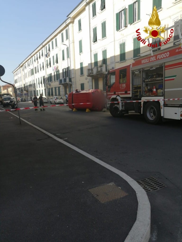 Livorno 13 luglio 2023. Intervento dei Vigili del Fuoco di Livorno intorno alle 17 per un incidente che ha visto una vettura ribaltarsi in viale Risorgimento. Il conducente è rimasto imprigionato nell’abitacolo.