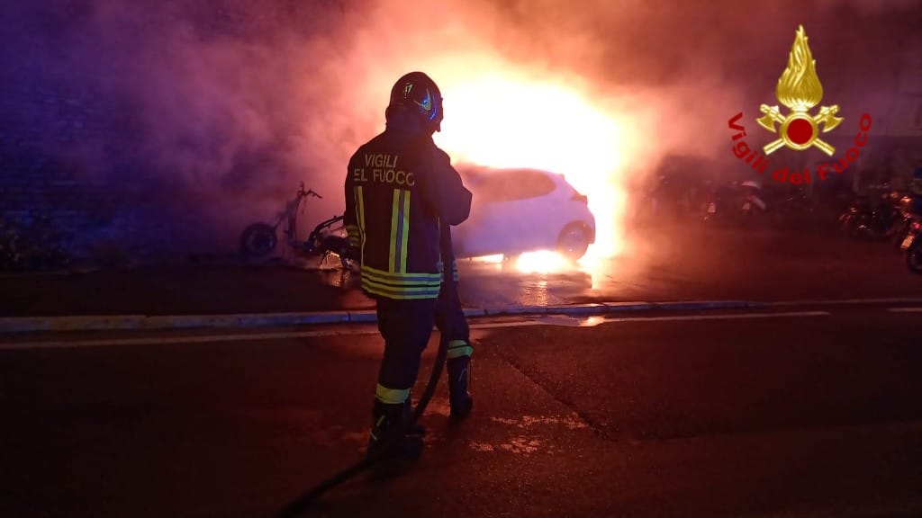Si è sviluppato un incendio che ha coinvolto uno scooter, andato distrutto e un’autovettura seriamente danneggiata.