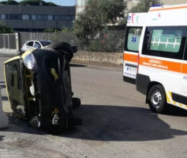 Auto si ribalta in via Umbria a Stagno. Sono due giovani coinvolti nell’incidente.