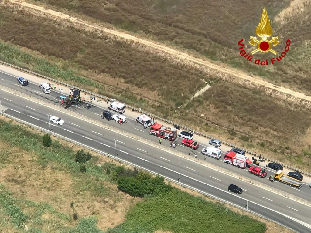 Il personale VF ha provveduto ad estrarre i feriti dagli abitacoli dei mezzi coinvolti mentre la corsia Nord veniva chiusa al traffico dalle 12.40 sino alle 15.00 circa. Anche la corsia Sud veniva momentaneamente chiusa per permettere l’atterraggio dell’aeromobile Pegaso del 118. Al momento risultano 14 feriti tra cui 5 ragazzi. Sul posto 5 mezzi del 118 e 5 pattuglie della Polizia di Stato.