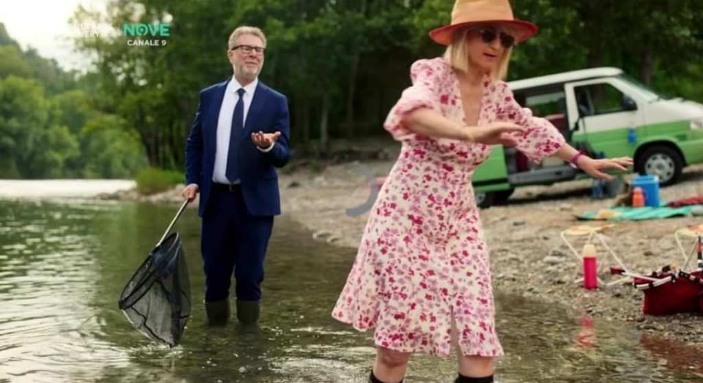 Nello spot pubblicato per la prima volta nella giornata di oggi martedì 1 agosto 2023 sui canali social di Nove si possono vedere Fabio Fazio e Luciana Littizzetto in campeggio al lago, intenti a pescare con un retino dei pesci. “Luciana è un dettaglio: mancano i pesci per l’acquario. Il resto è a posto” esordisce il conduttore; “Ma che fine hanno fatto i pesci che avevamo di là scusa?” ribatte la sua storica spalla; “Sono rimasti perché hanno l’esclusiva“.