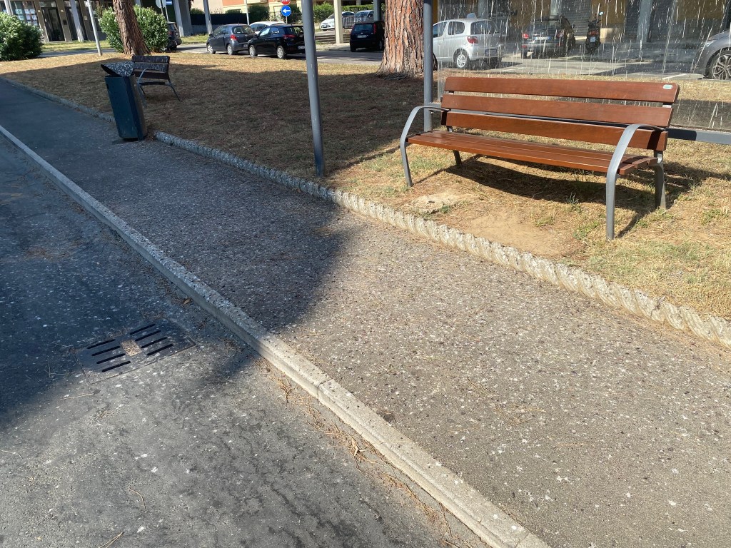 Il Consigliere leghista spiega che: “Uno dei punti più colpiti è la pensilina di attesa bus, il marciapiede antistante, la panchina laterale alla pensilina, il cestino dei rifiuti, lo spazio verde della piazza”.
