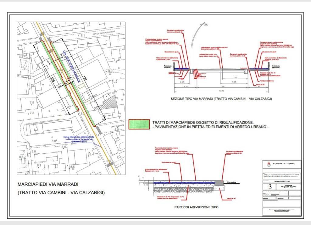 Intervento di riqualificazione della via Marradi ritenuto urgente per il frequente transito su strada, presenza di molti pedoni, condizione che si ripercuote sull’asfalto delle strade, dei marciapiedi e sulla sicurezza, come evidenziato da residenti e commercianti del quartiere di via Marradi, via Cambini, via Roma.
