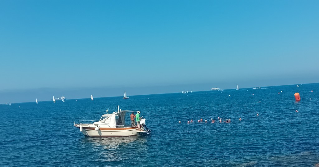 Gara di nuoto con doppio giro di boa per la coperturaa a bracciate su un percorso di 800 metri al Porticciolo di Ardenza