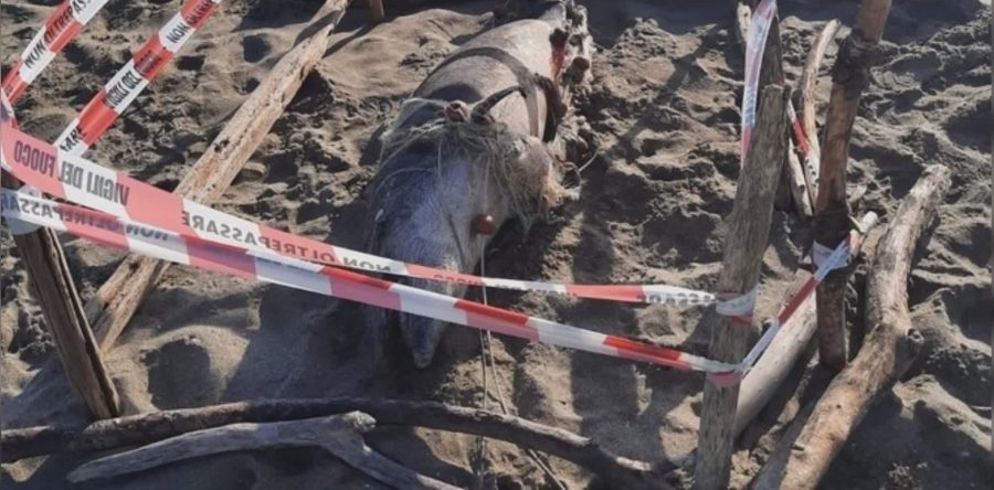 TORRE DEL LAGO – A Torre del lago (LU) ieri attorno alle ore 18:30 i vigili del fuoco del presidio nautico di Viareggio sono stati allertati dalla Capitaneria di Porto per recuperare la carcassa di un cetaceo delfinide che stava galleggiando alla deriva, avvolto in un pezzo di rete da pesca.