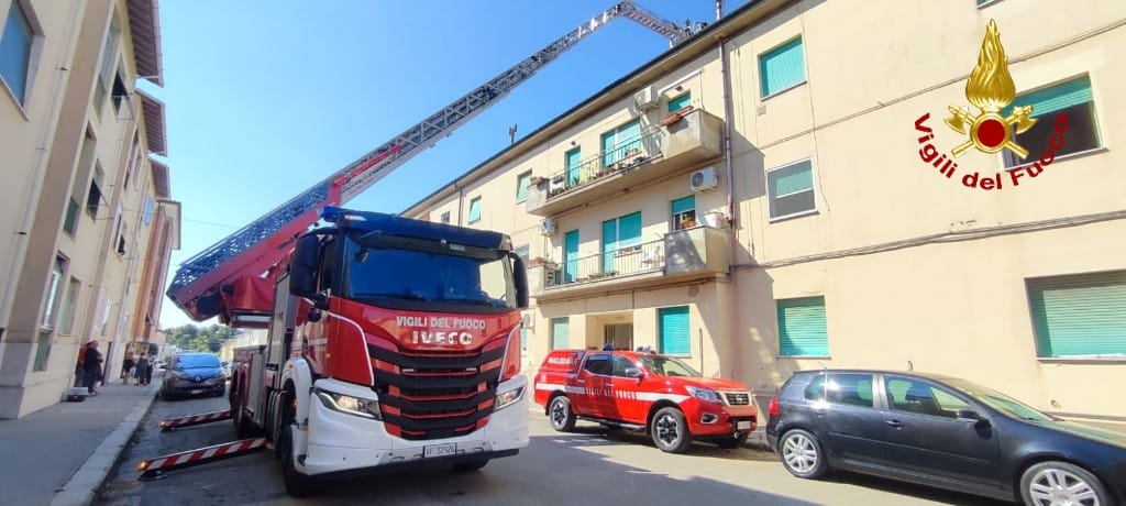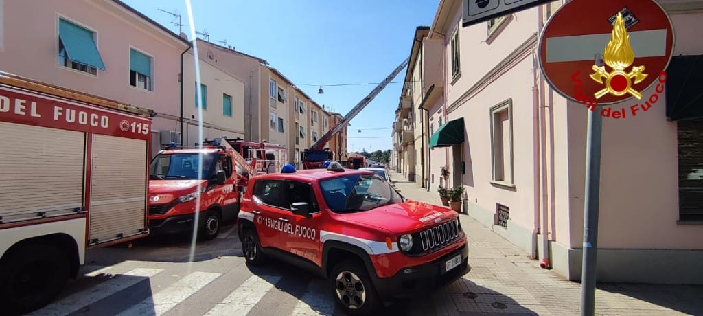 Intervento dei Vigili del Fuoco di Livorno per il cedimento di un tetto di abitazione con crollo di circa 20 mq di copertura in via Mascagni a Cecina. Sul posto in azione l’autoscala, il Trid (cestello), personale del nucleo S.A.F oltre a 2 squadre VF, 10 persone su 3 appartamenti sono state evacuate. Non risultano persone coinvolte. L’evento si è verificato poco prima delle 7 di stamattina