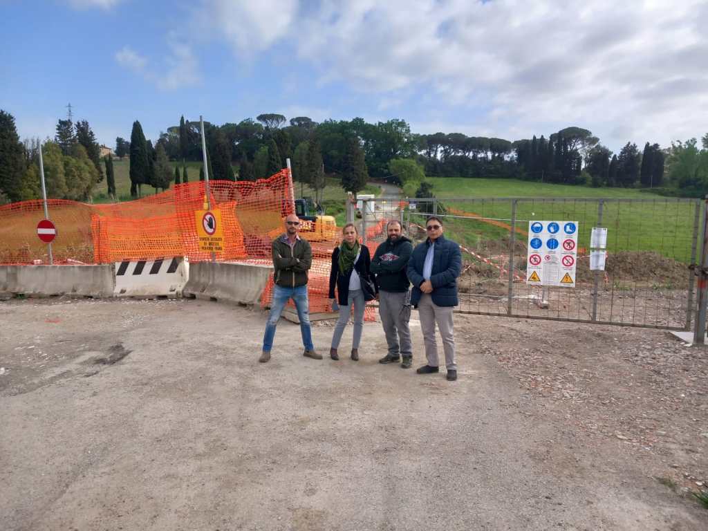 Il cartello dei lavori riporta la data di fine lavori: 20/07/2024. Oggi la delegazione di Lega Collesalvetti: Luca Tacchi, Vito Capogna, Laura Petreccia con il candidato sindaco Carlo Fredianelli si è recata per un sopralluogo sul cantiere di via della Cerreta.