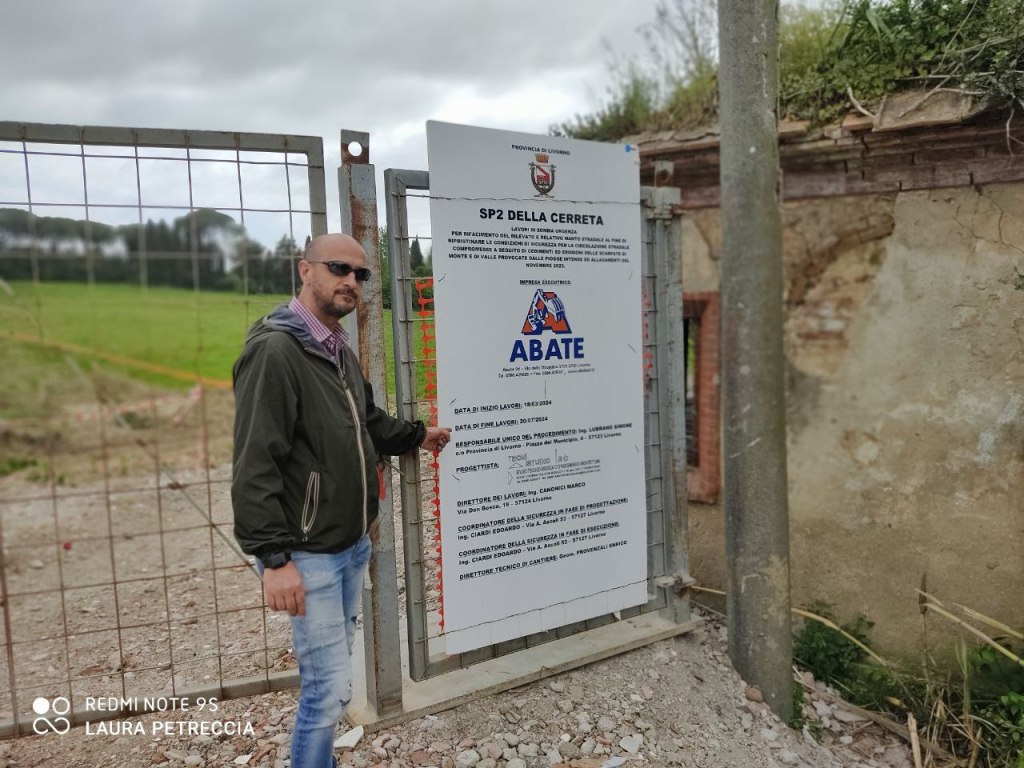 Via Cerreta, al 29 Marzo 2024 cantiere aperto al 6 aprile 2024 cantiere chiuso. Sopralluogo del candidato sindaco Carlo Fredianelli e di Lega Collesalvetti.