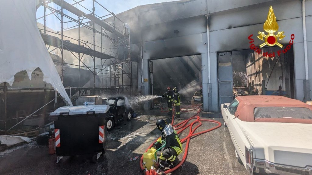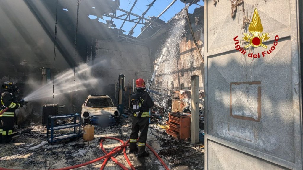Intervento in forze dei vigili del fuoco di Livorno ieri mattina alle 9.53 in Via Oberdan Chiesa in Località Stagno, comune di Collesalvetti (LI) a seguito di un incendio che ha coinvolto un capannone adibito ad attività di officina riparazione di auto causando danni ingenti alla attività stessa nonché ad alcuni mezzi che erano presenti all’interno.