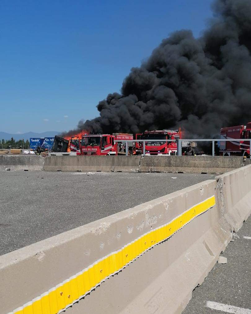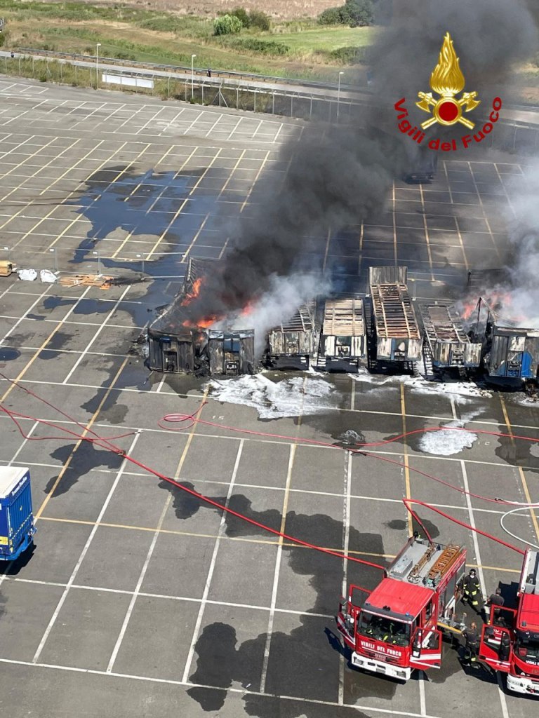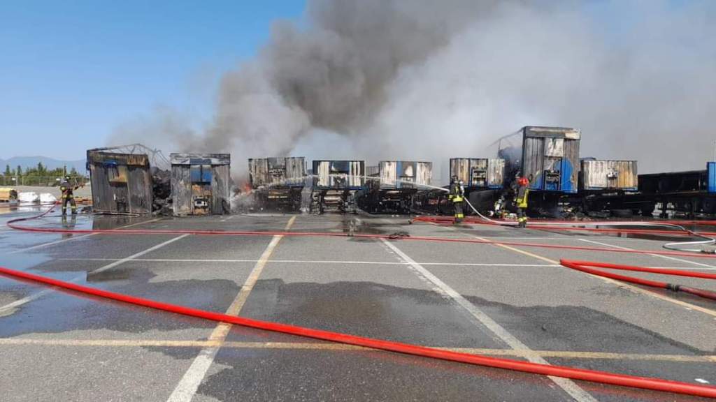 Sono in corso interventi da parte dei vigili del fuoco e delle squadre di protezione civile per lo spegnimento di un incendio che ha coinvolto alcuni rimorchi presenti in un piazzale interno all’ingresso dell’Interporto est.