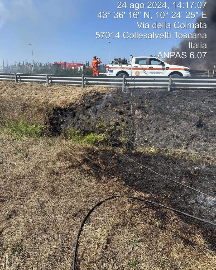 Sono coinvolte due squadre di Livorno, cinque unità della squadra volontari VVF, è in arrivo l’elicottero dei VVF “Drago” ed è presente sul posto la squadra distaccamento VVF di Collesalvetti. Attivata anche una squadra Aib della protezione civile di Collesalvetti per la bonifica.