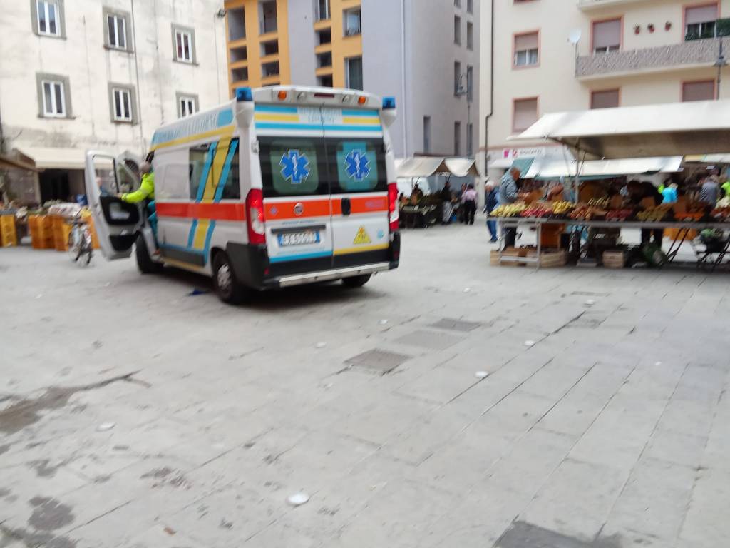 L’intervento dell’ambulanza a sirena spiegata in piazza Cavallotti