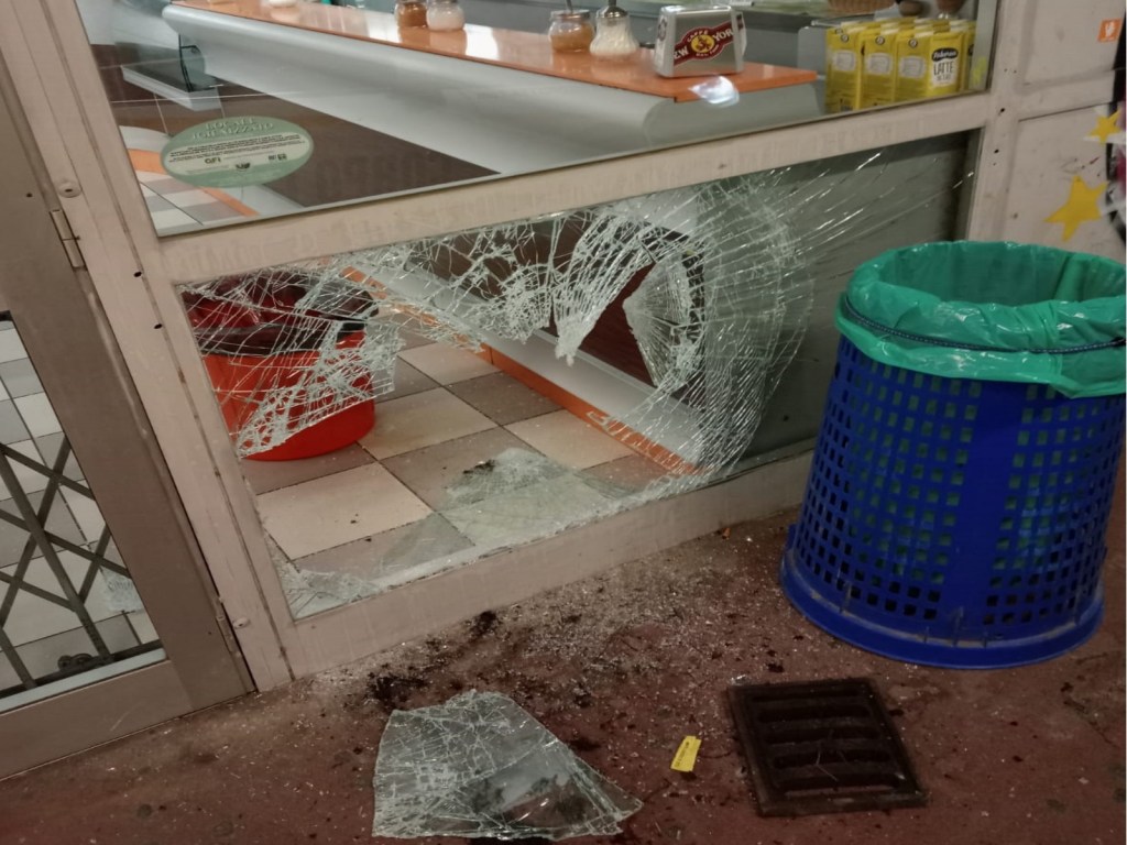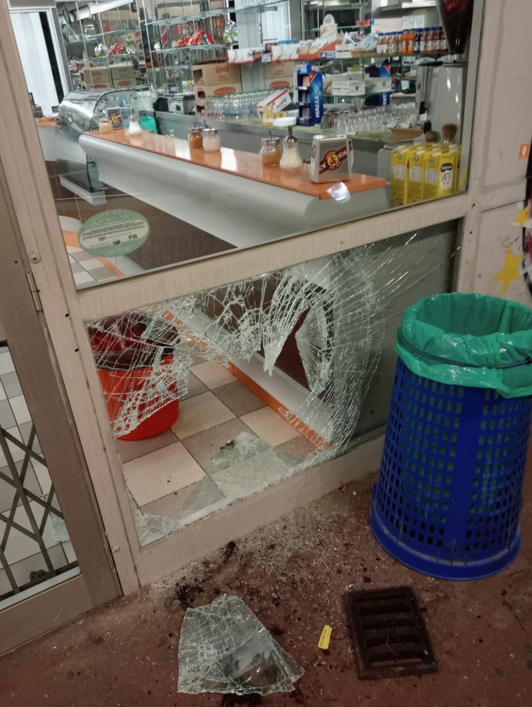 Banda del buco in fuga a mani vuote ma lascia danni alla porta del bar.