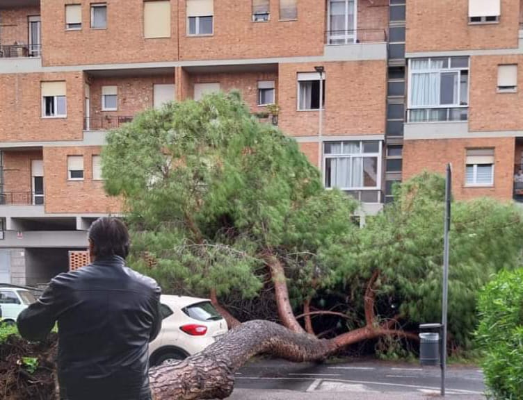 Sabato 26 mattina un pino di via De Sanctis è caduto in strada, coinvolgendo, fortunatamente, in modo leggero, una macchina e la persona al volante.