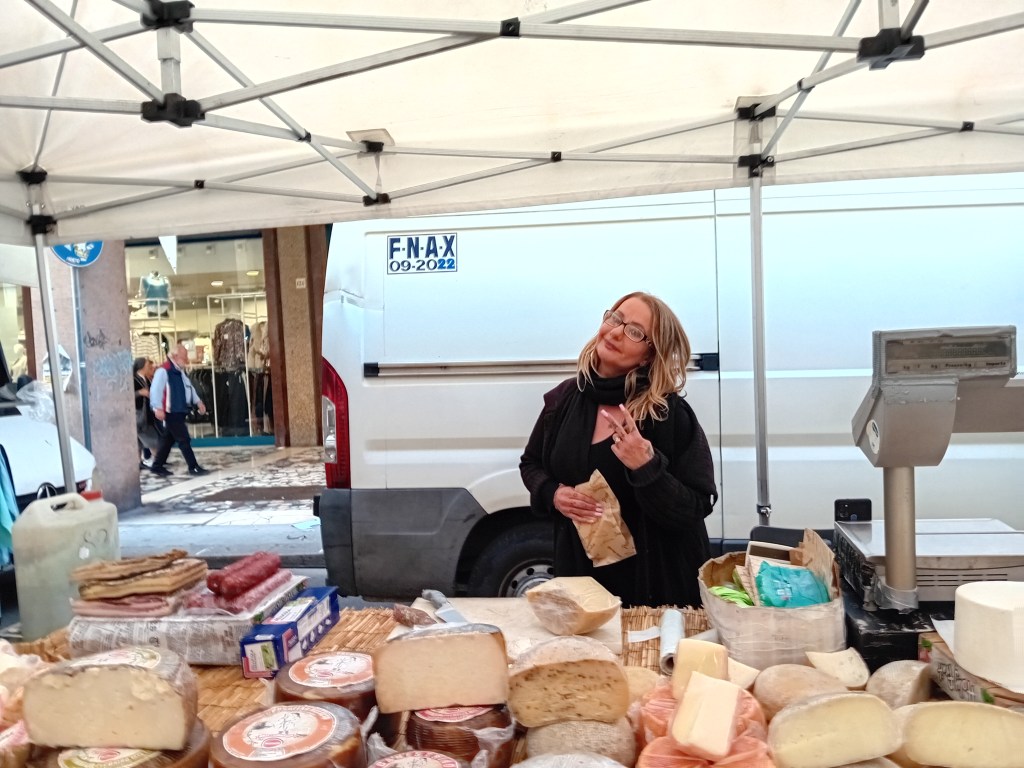 Anita fa mercato anche il venerdì a Livorno. La salutiamo e ci regala un pane cotto a legna. Fragrante e delizioso!