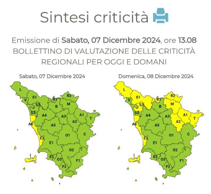 Il codice giallo per rischio vento sarà in vigore dalle ore 20 di oggi, sabato 7 dicembre, alle ore 16 di domani, domenica 8 dicembre. Mentre il codice giallo per rischio mareggiate sarà in vigore dalle ore 22 di oggi fino alle ore 16 di domani, domenica 8 dicembre.