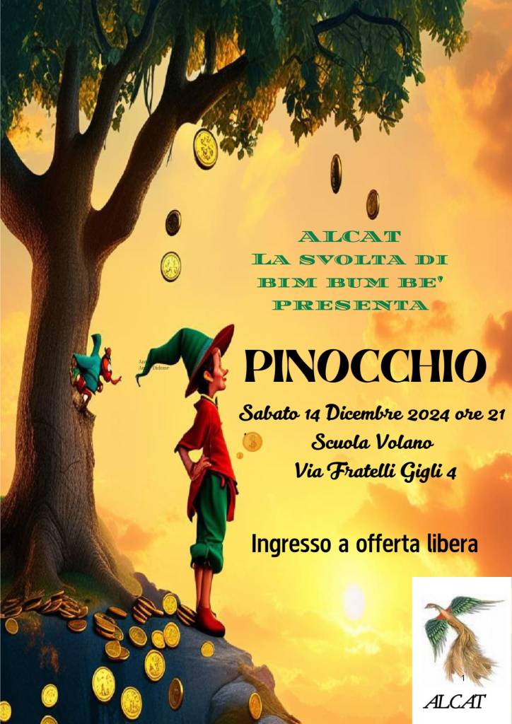 Sabato 14 dicembre, alle ore 21 alla Scuola Volano (via F.lli Gigli 4) la compagnia La Svolta di Bim bum bè porterà in scena “Pinocchio”, adattamento di Viviano Terreni, per la regia di Maila Nosiglia. Costumi e scene: Pierangela Bergonzo.