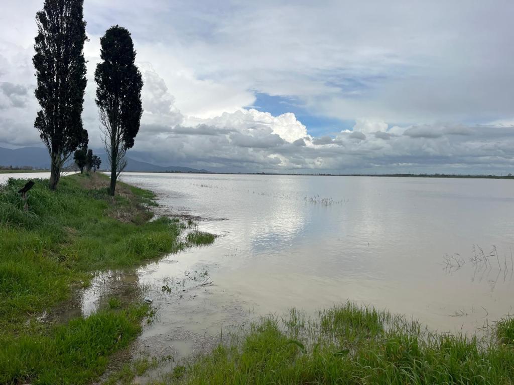 Campi appena seminati inondati, serre scoperchiate e migliaia di quintali grano finiti sotto 1,50 centimetri di acqua e fango. Le immagini impietose arrivano dove le acque della Scolmatore risalgono verso Biscottino, in direzione Vicarello, zona Faldo.