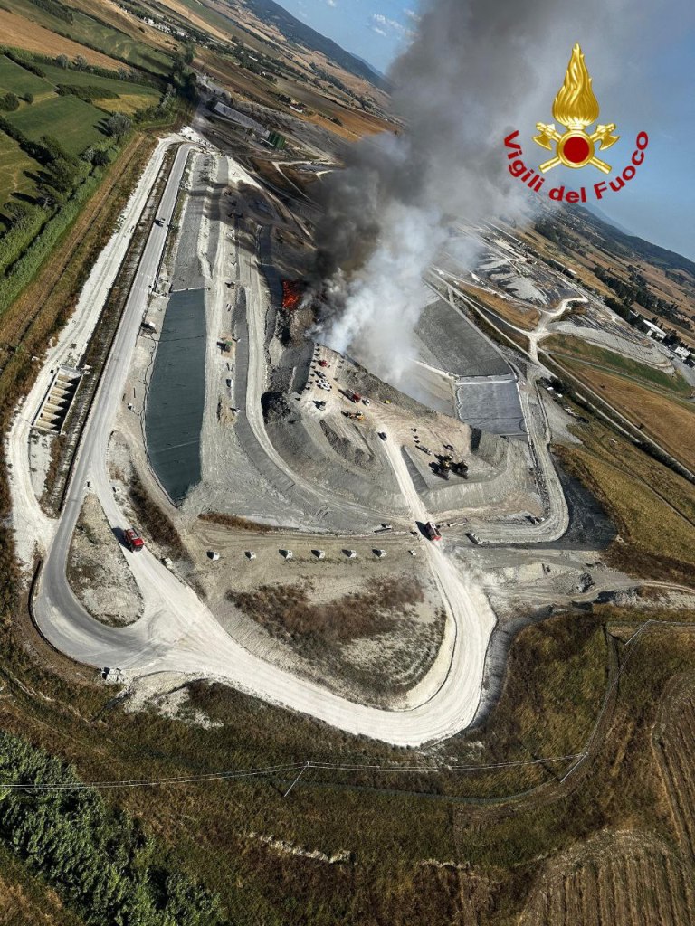 In corso intervento dei Vigili del Fuoco di Livorno a seguito di un incendio.in discarica in località Scapigliato lungo la Ss 206, comune di Rosignano Marittimo.