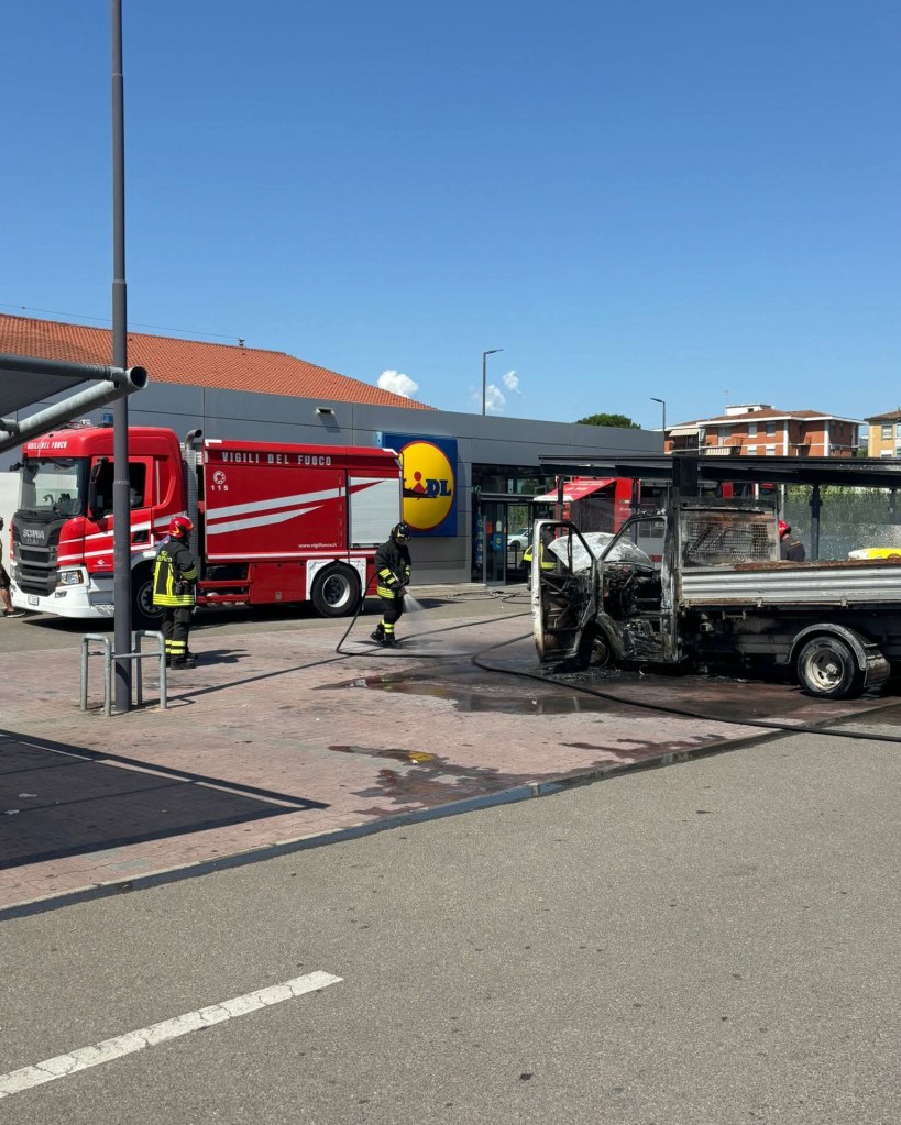 L’episodio è avvenuto nei pressi del supermercato Lidl di Collesalvetti, dove un furgone è stato avvolto dalle fiamme. I vigili del fuoco sono intervenuti per spegnere l’incendio, e al momento non ci sono notizie di feriti. Le cause dell’incendio sono ancora in fase di accertamento.