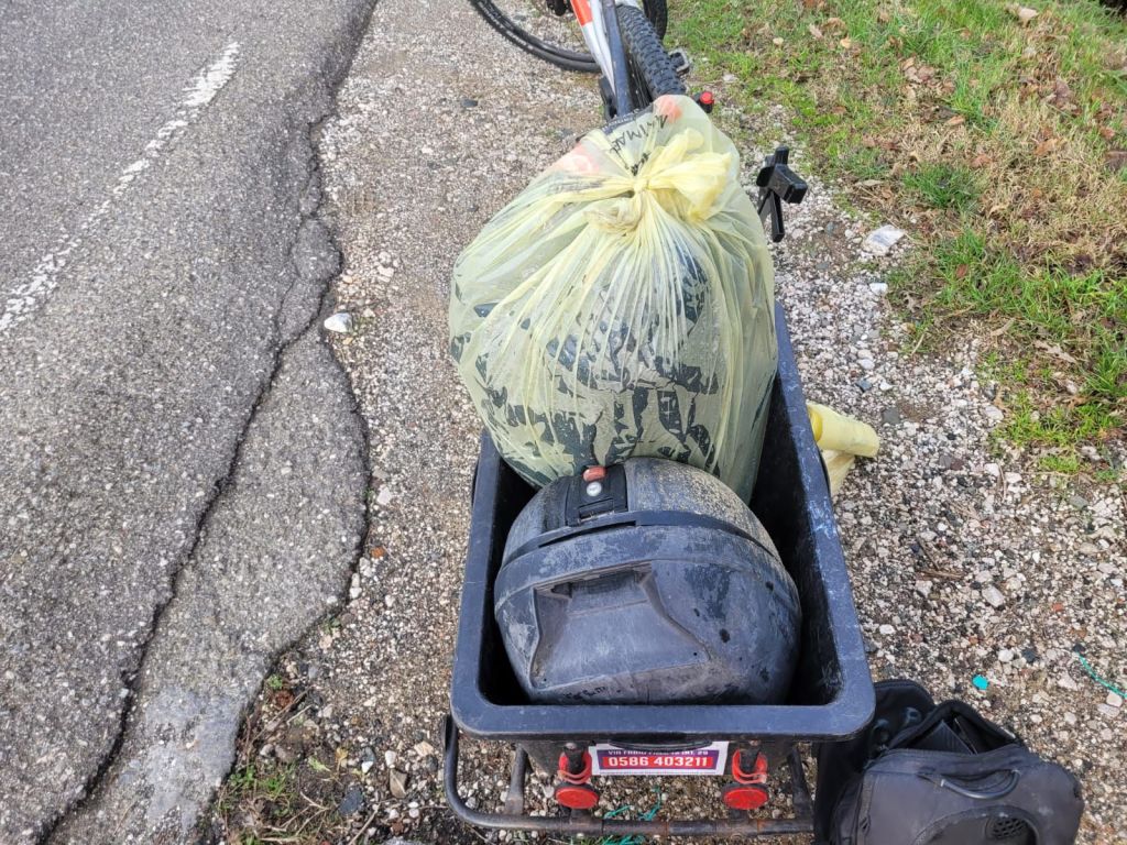 In quella zona ho già pulito tante volte, e so che c’è ancora molto da fare. Appena arrivato, la vista dei rifiuti abbandonati mi ha ferito gli occhi e il cuore. Ma niente lamentele: mi sono messo subito all’opera. Ho riempito un bauletto da casco e un sacco di immondizia che, una volta pesato, segnava 4 chili e 25 grammi.